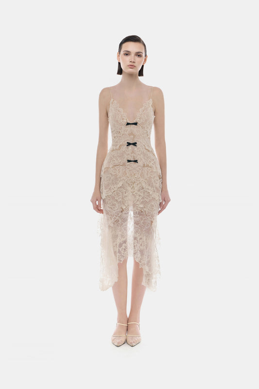 MONTSAND Purple Beaded Lace Midi Dress