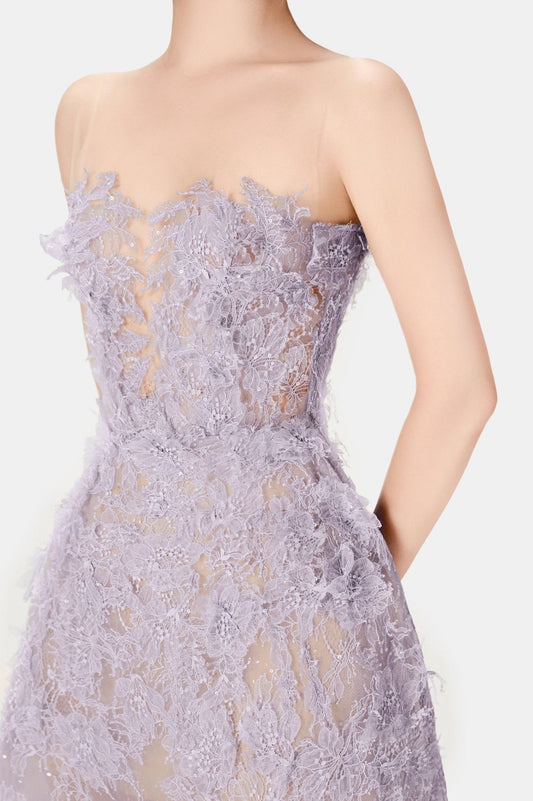 MONTSAND Purple Beaded Lace Mini Dress