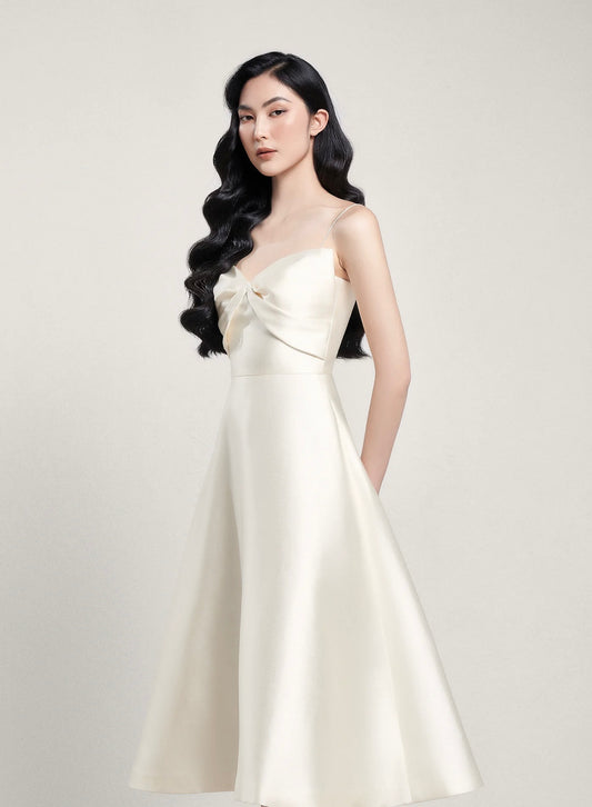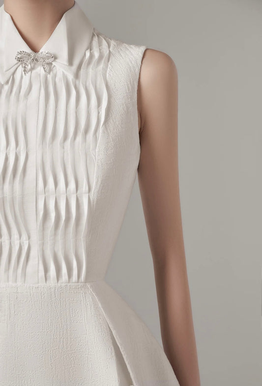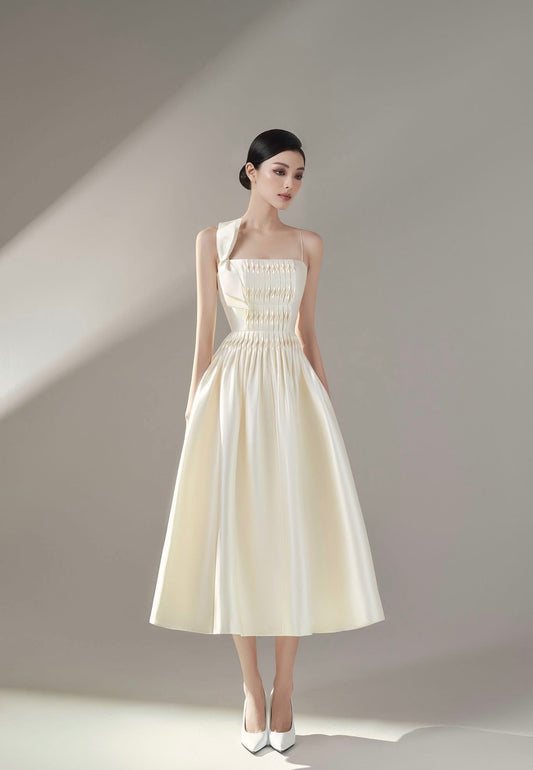 Raffiné White Poliana Cross Stitched Tucked Midi Dress