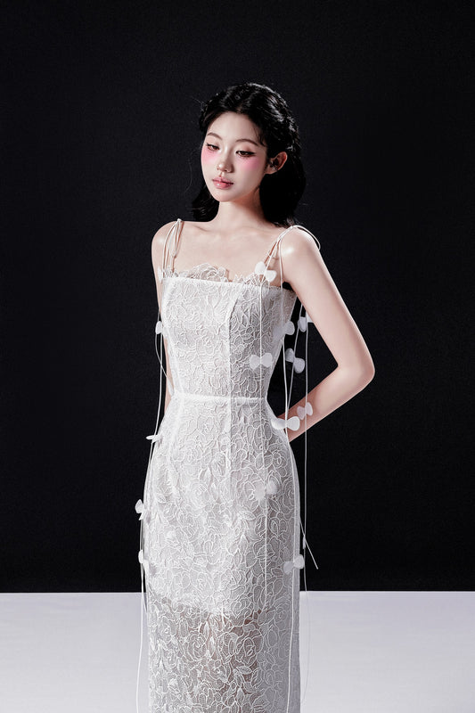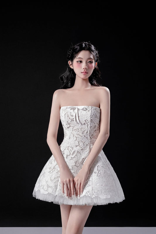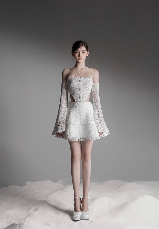 Raffiné White Verni Cut-out Layered Lace Mini Dress