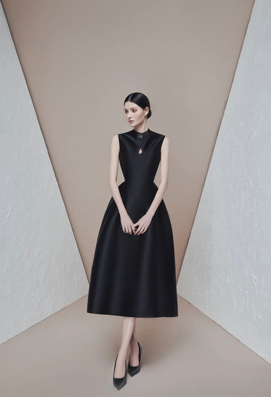 Raffiné White& Black Perlita Folded Neck Midi Dress