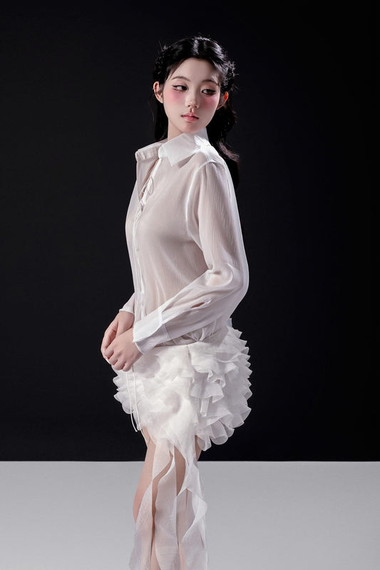 Raffiné Marlia Crinkle Organza Shirt& Aurora Ruffled Mini Skirt