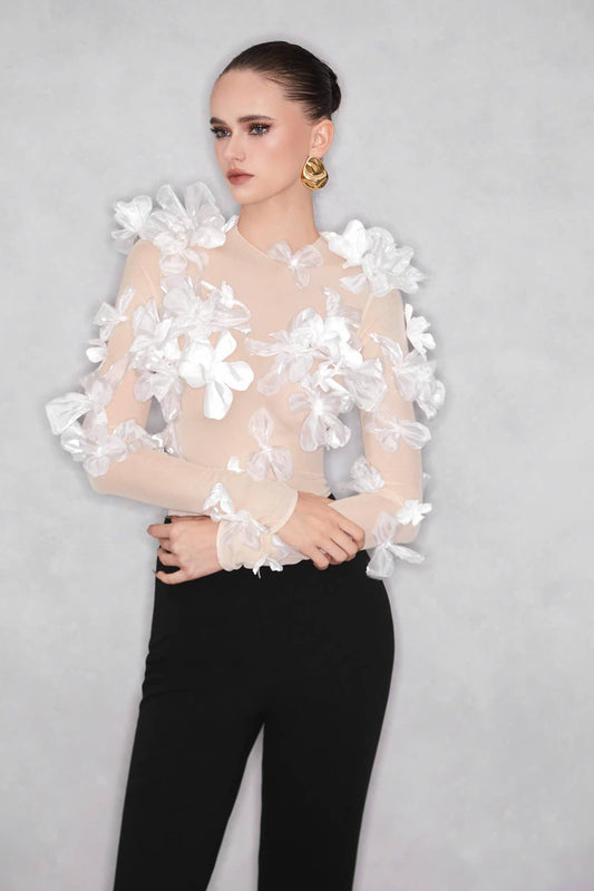 FA SOGNO NUDE CHIFFON TOP MINI SKIRT