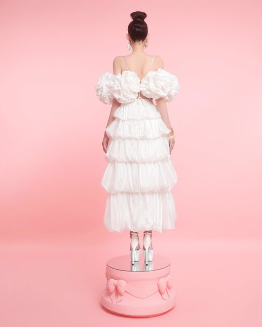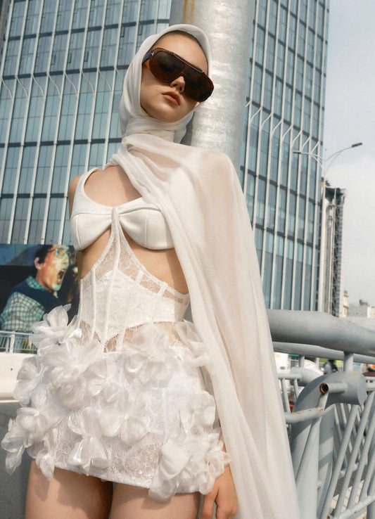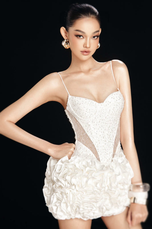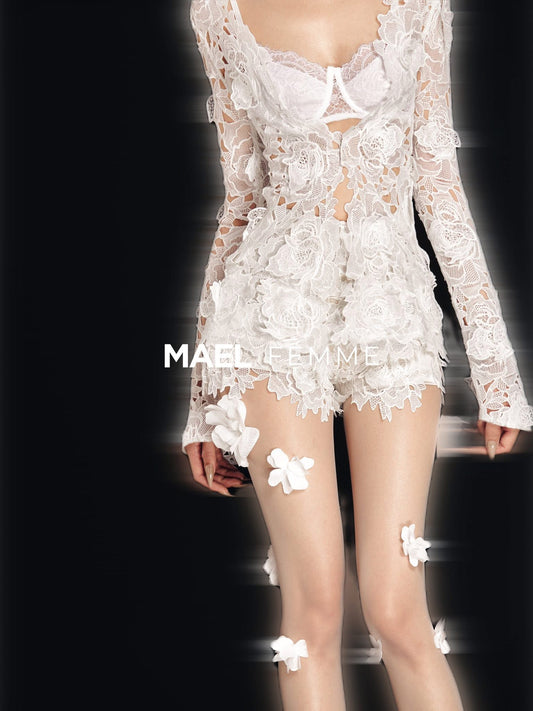MAEL FEMME White 3D Flower Azalea Mini Dress
