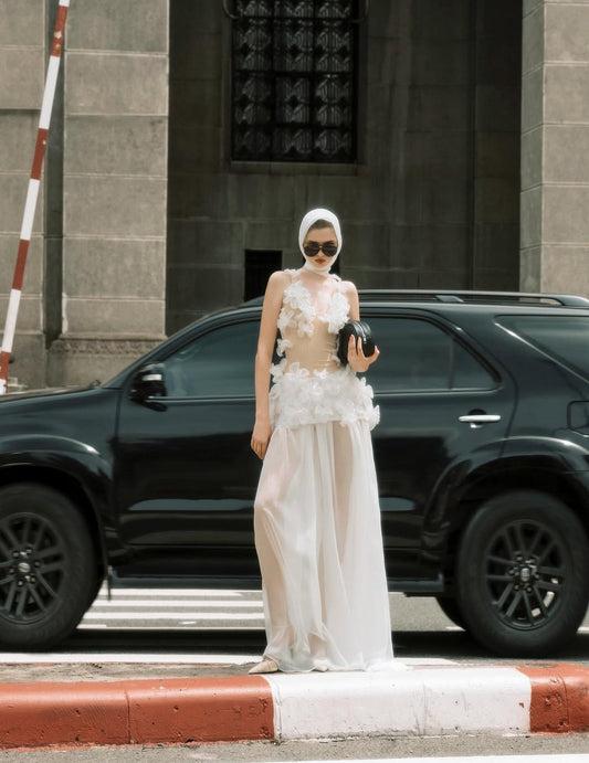 MAEL FEMME Nude Vivian Flower Maxi Dress