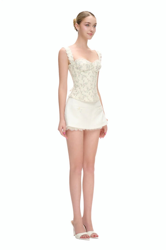 JUBIN White Floral Phoebe Top & Lace Skirt