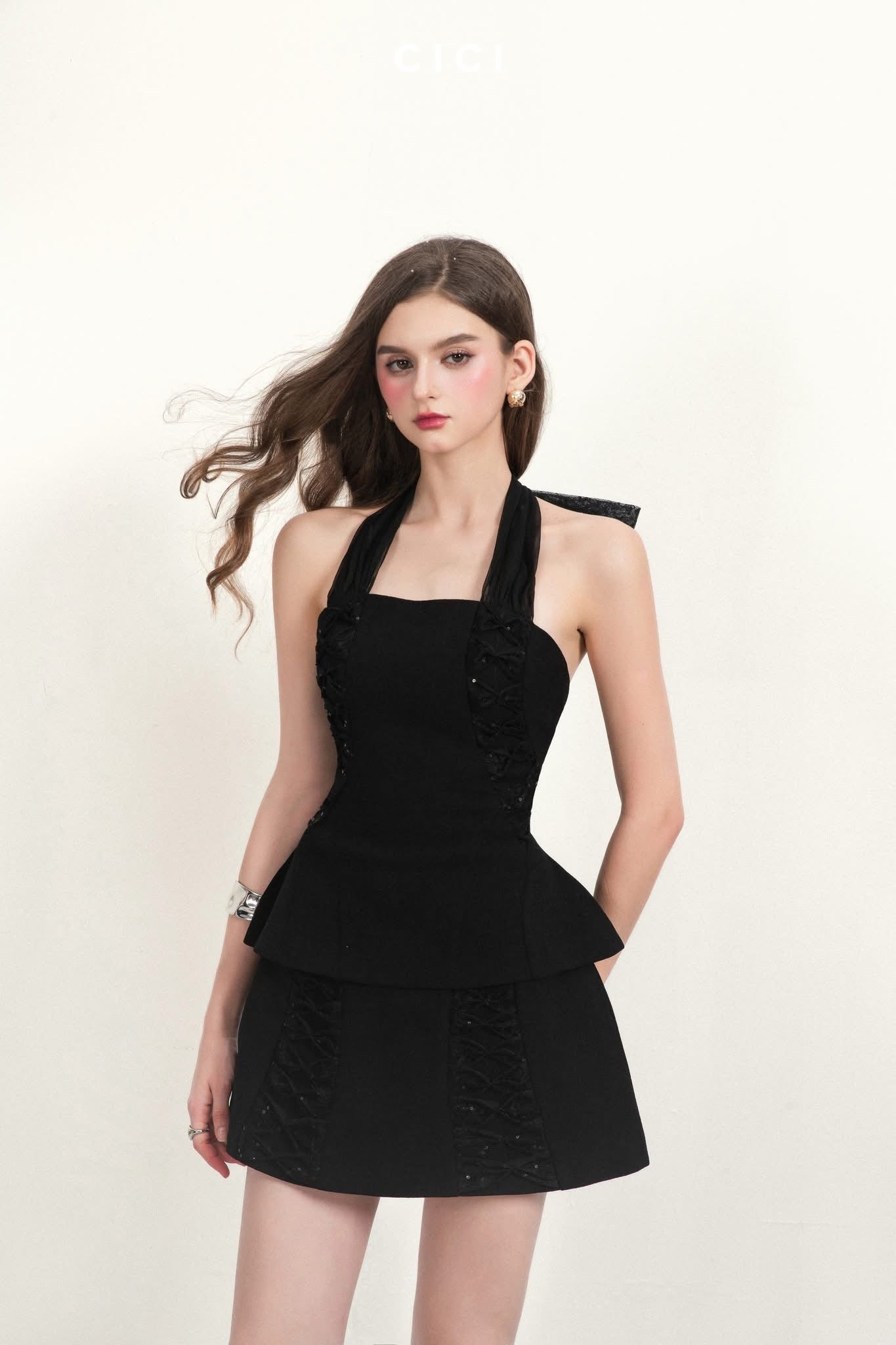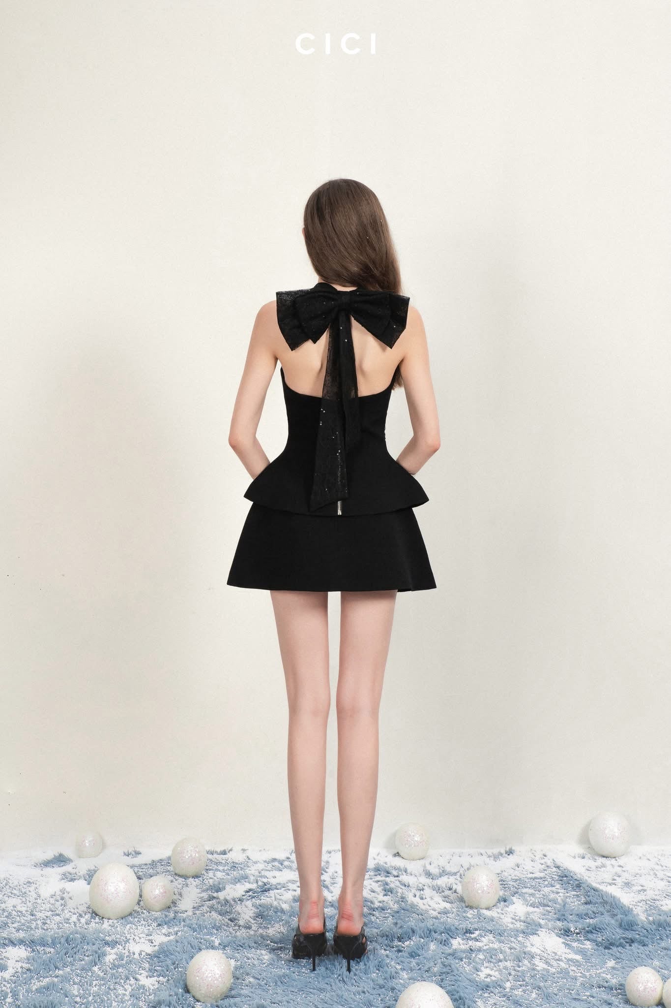 CICI Black ARIN Bowtie Open Back Set Top& Skirt