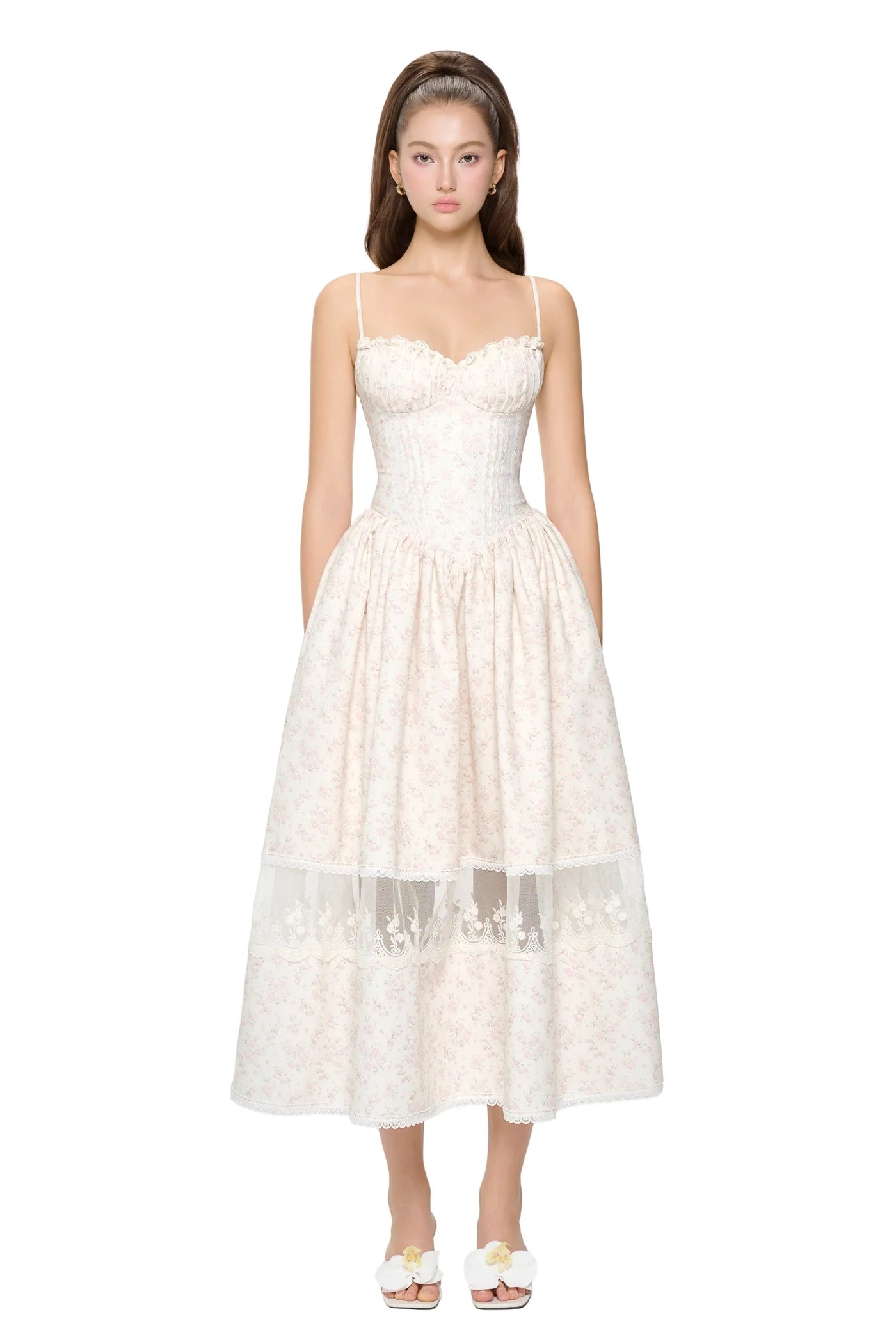 JUBIN White Floral Midi Dress