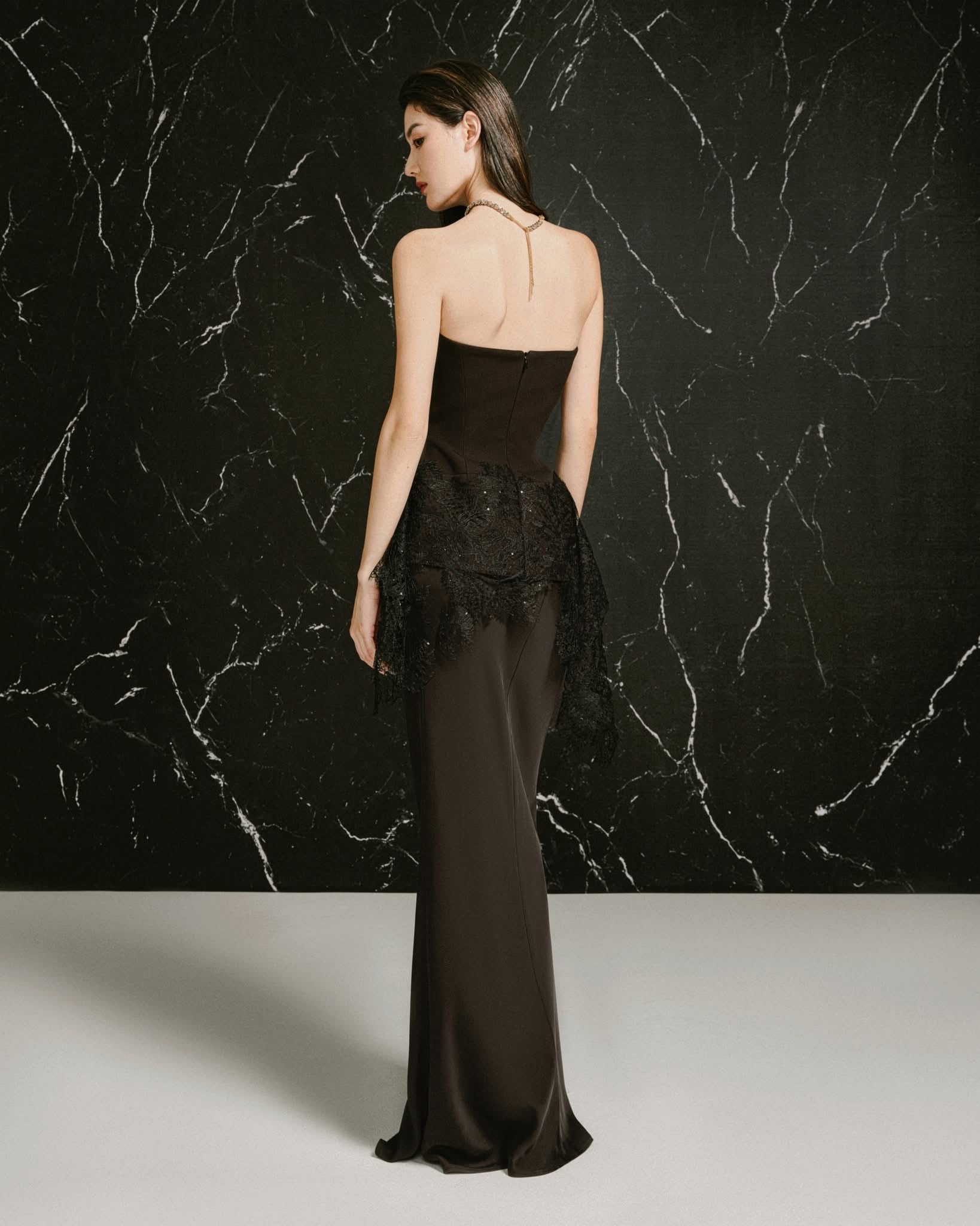LANE JT Elegant Minimalist Black Malika Lace Top & Silk Skirt
