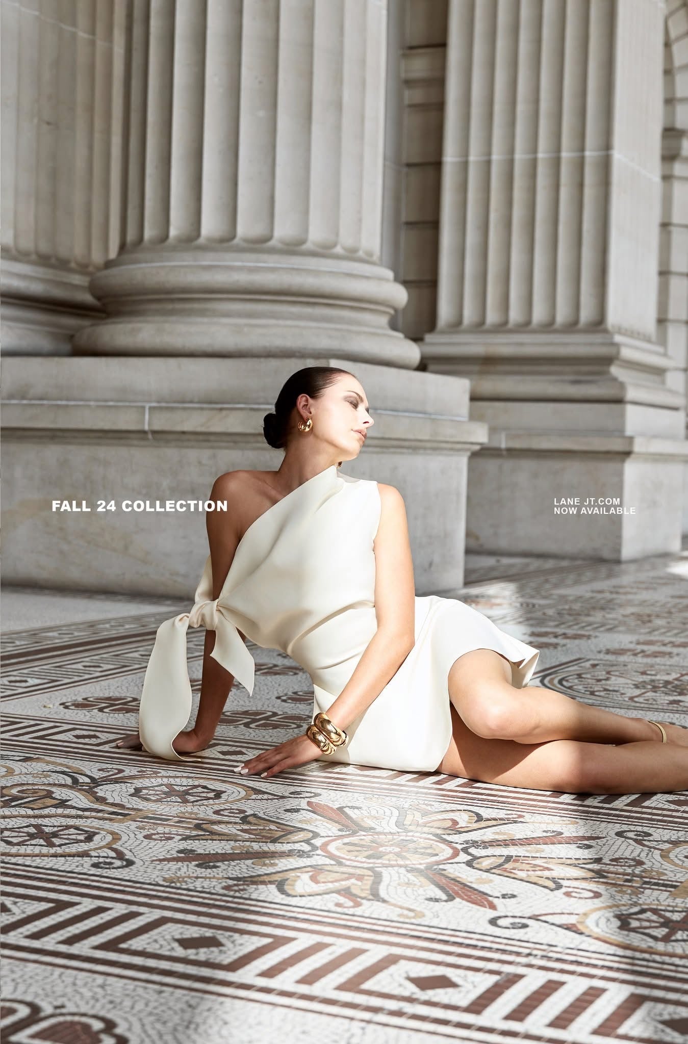 LANEJT White Beauvoir Asymmetric Shoulder Mini Dress