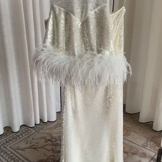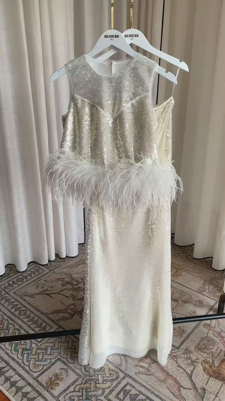 MAI DIRE MAI White Sparkling Fairy Feather Sequinned Top & Skirt