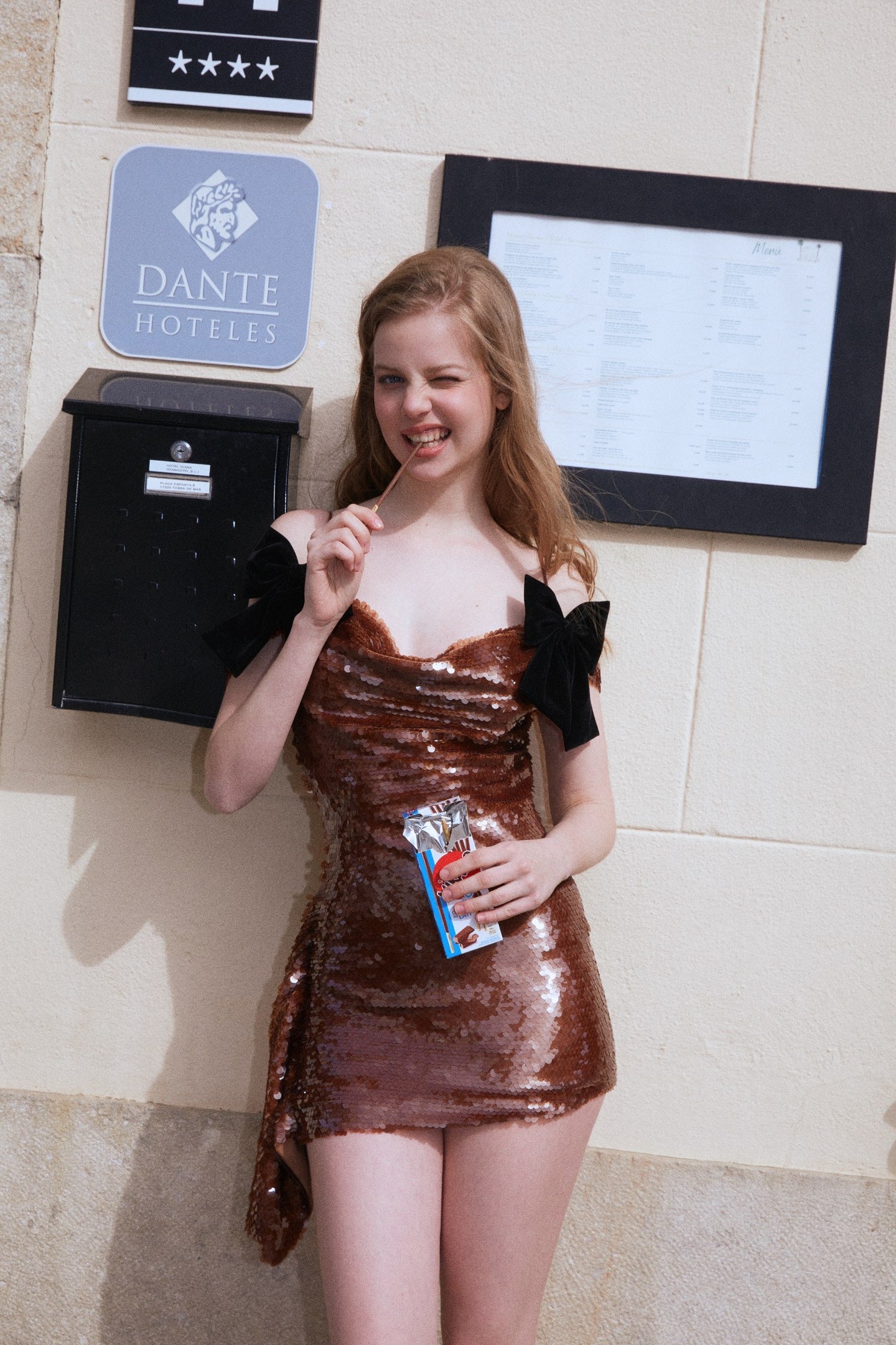 MINPURA Brown Bow Red Mini Dress