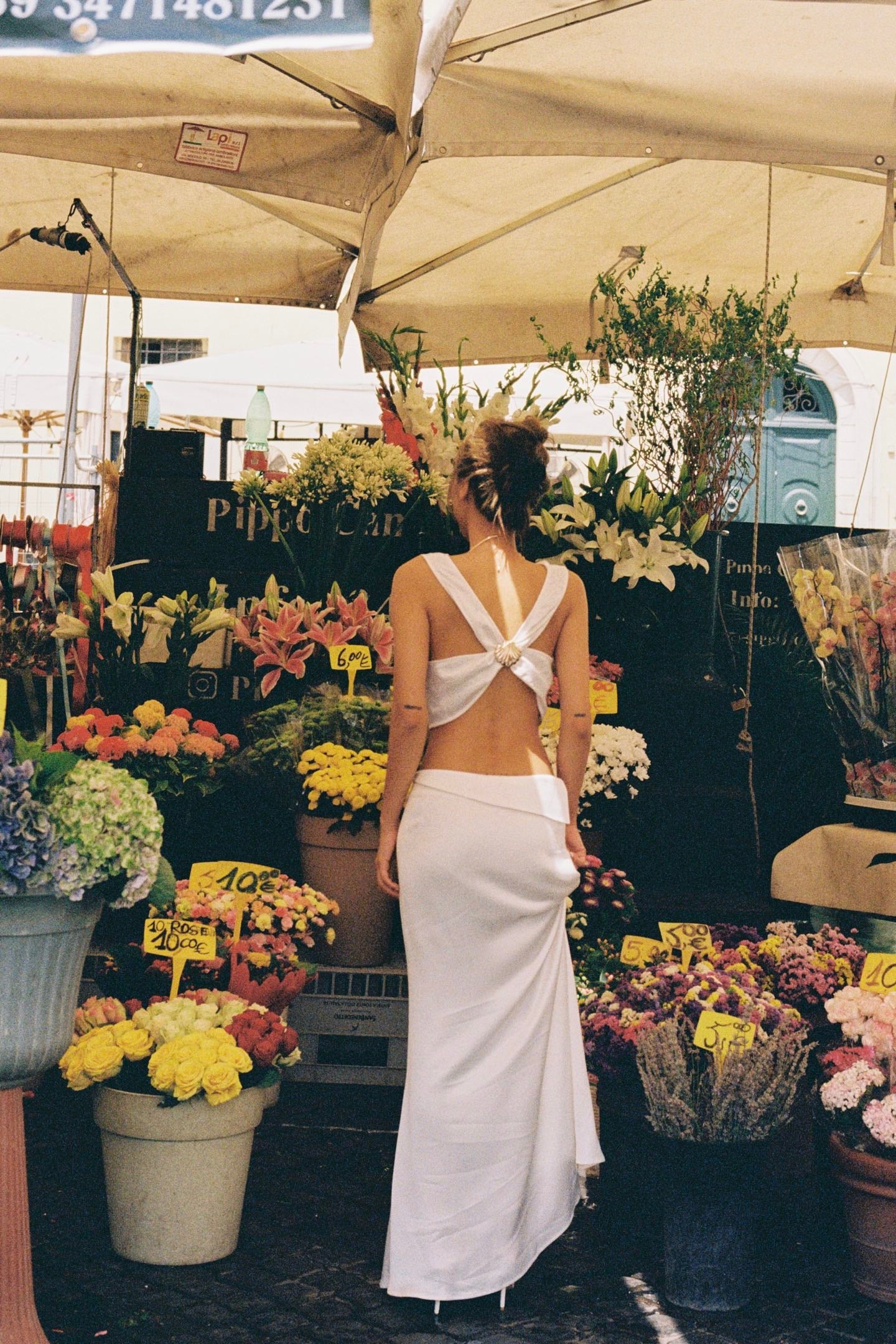 MINPURA White Backless Shell-Embellished Top & Satin Skirt