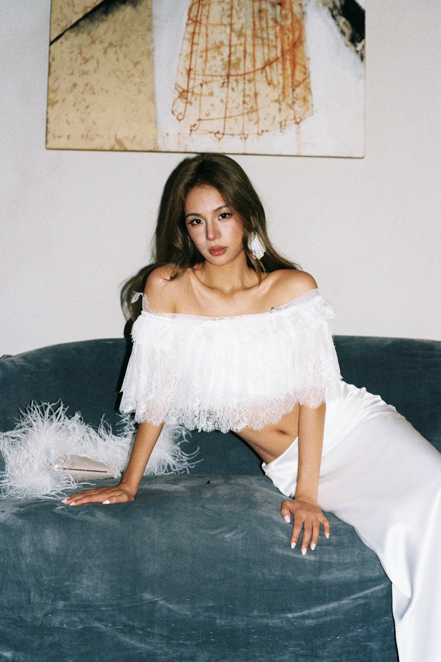 MINPURA White Spitzen-Oberteil Mit Top & Silky Skirt