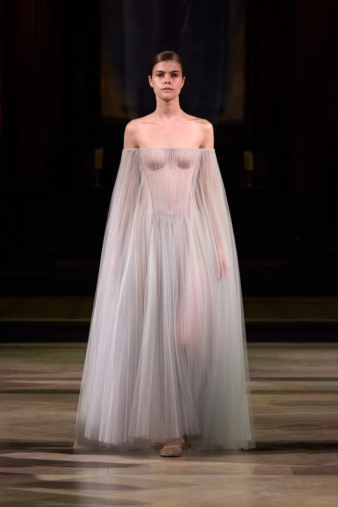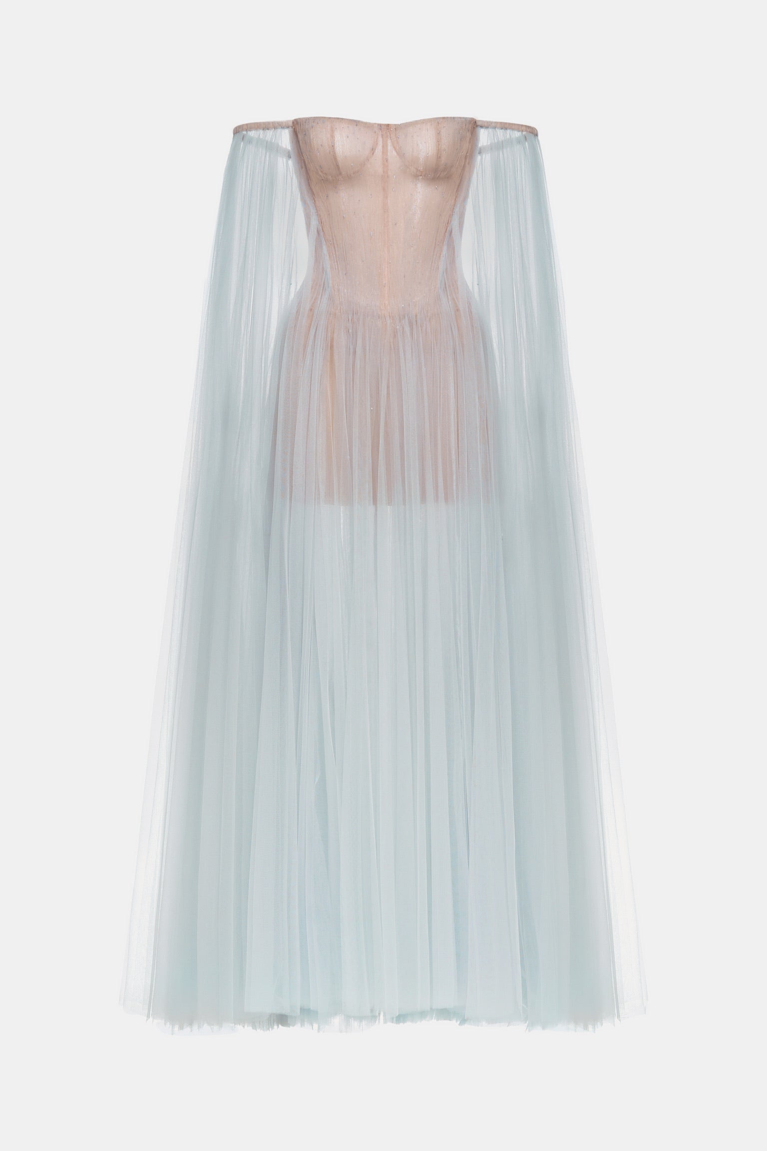 MONTSAND Baby Blue Vacation Elegant Tulle Off-shoulder Maxi Dress