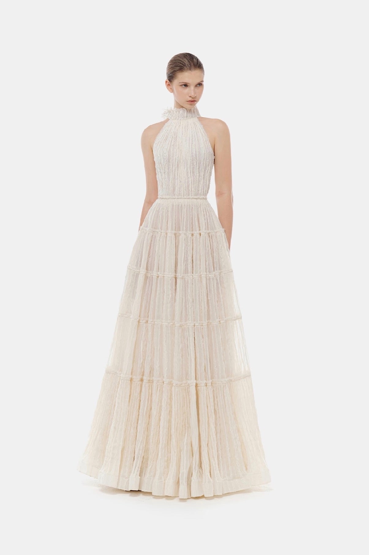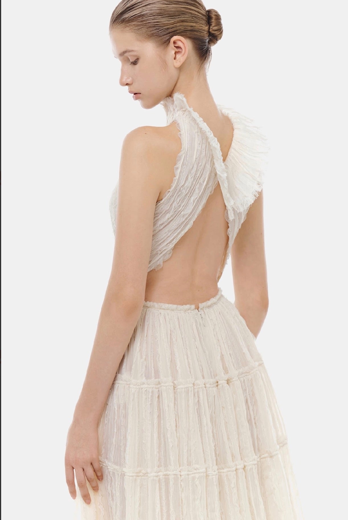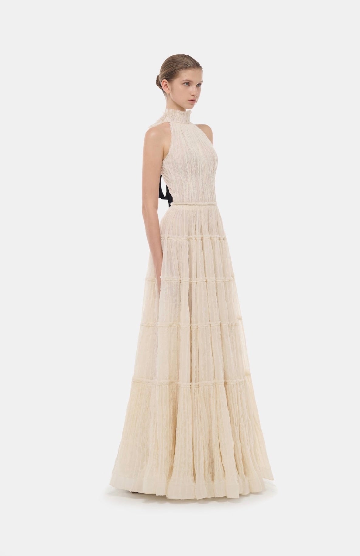 MONTSAND Burgundy Red Smocked Lace Maxi Dress