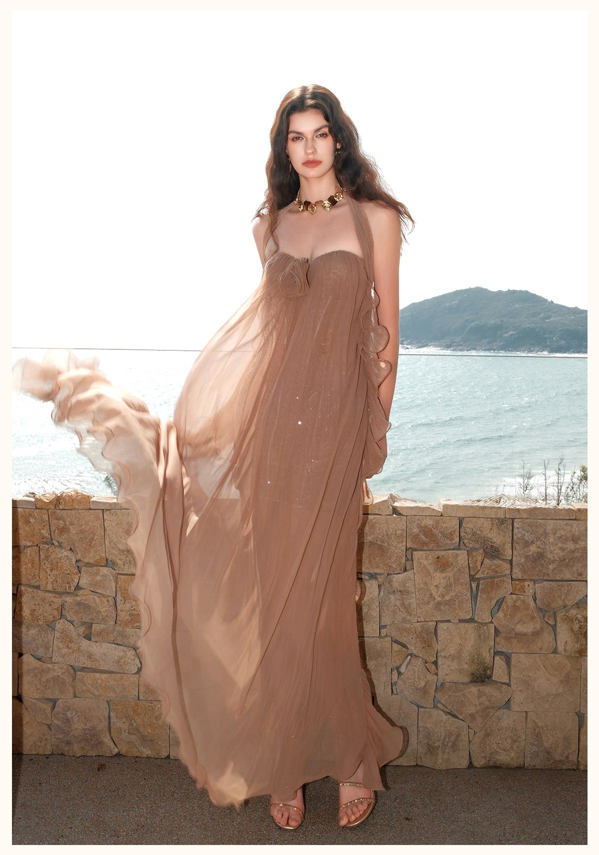 SHEERLUCK Brown Thessa Vacation Maxi Dress