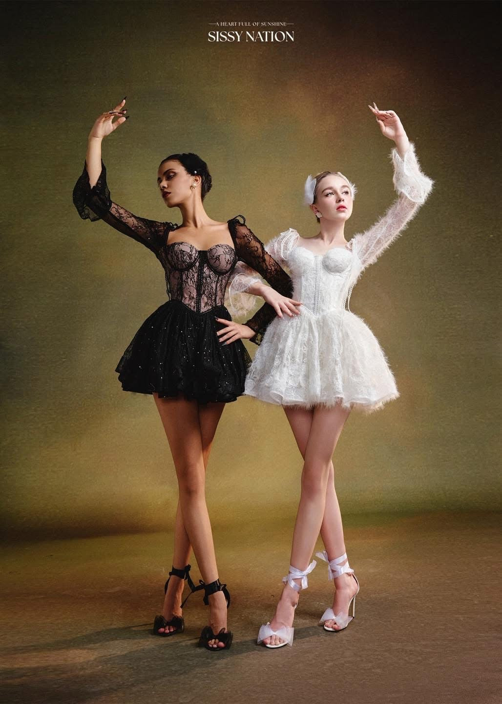 Sissy Nation Black Lace Clover Corset Mini Dress