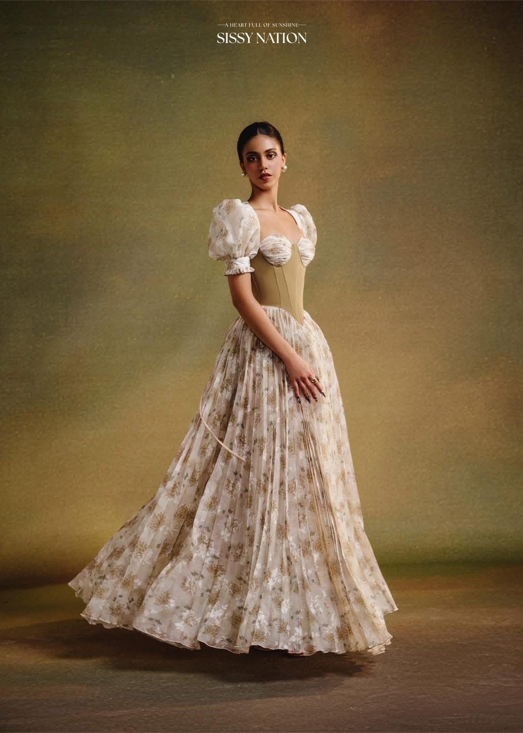 SISSY NATION Pink Forbidden Corset Pleated Maxi Dress